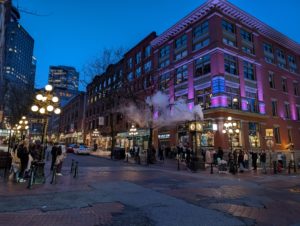 蒸気時計(Gastown Steam Clock)がとても有名なシンボルで15分に1回音が鳴り、蒸気が出ます。