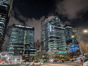 道中はオフィスビルが多く、明洞などとは違って落ち着いた雰囲気でソウルの違う一面を見ることができる場所です。とても都会的な雰囲気なエリアですがオフィス街なので特に何があるというわけではないです。