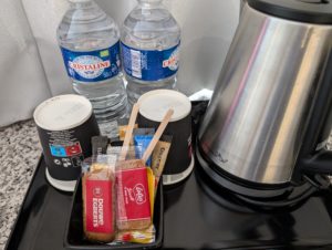 無料の水、コーヒー、紅茶、Biscoffまでありました。