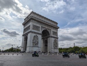 車が忙しく行き交う通りのど真ん中にあり、凱旋門の周りは車がビュンビュン通っているので渡りにくく、歩行者が凱旋門に近づくにはちょっとグルっと回ります。