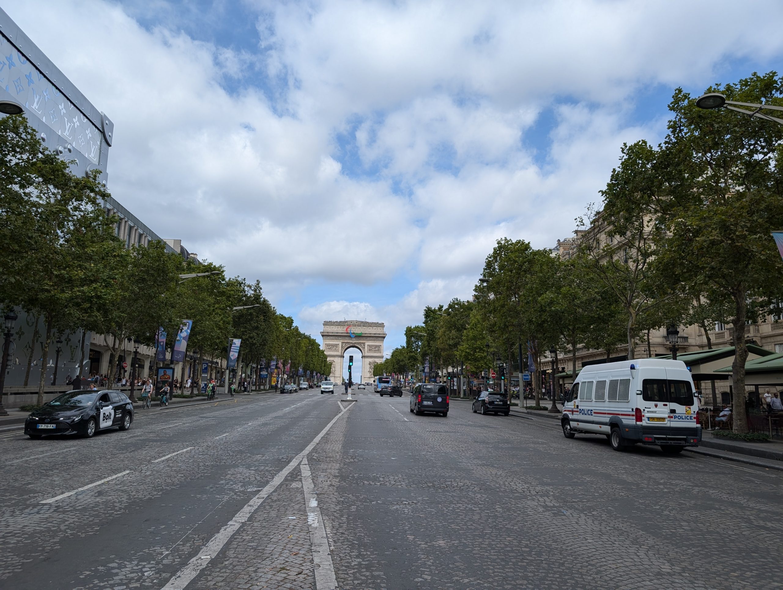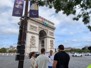 2024年夏のオリンピックの時期に行ったので、凱旋門もオリンピック仕様で凱旋門の前で選手らしき人がインタビューを受けていました。